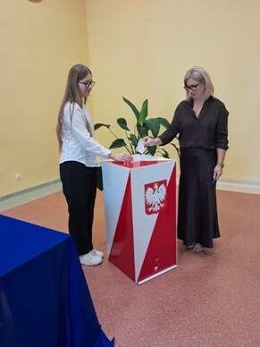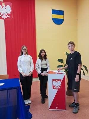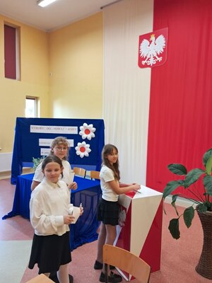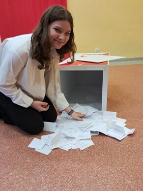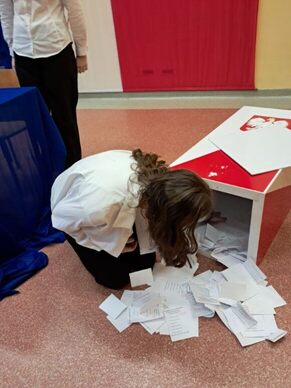 Nad sprawnym przebiegiem wyborów czuwała Komisja Wyborcza w składzie: Hanna Gierczak kl. 8b, Nadia Nizio kl. 8b, Hanna Zielińska kl. 8a i Amelia Białoskórska kl.8a.